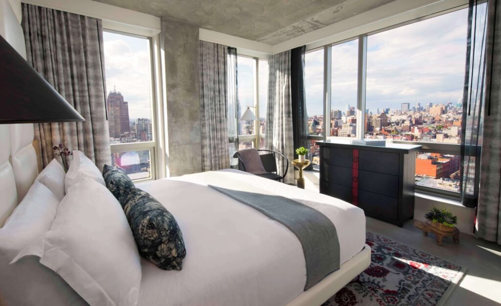 Not every Five Boro Bike Tour hotel needs to be a splurge. Arlo SoHo has built a following among savvy urban travelers who prize clever design, great common areas, and a central location over room square footage. The micro-hotel format maximizes every inch of the guest rooms — smart built-in storage, fold-flat surfaces, and minimalist layouts mean even compact rooms feel intentional rather than cramped.
